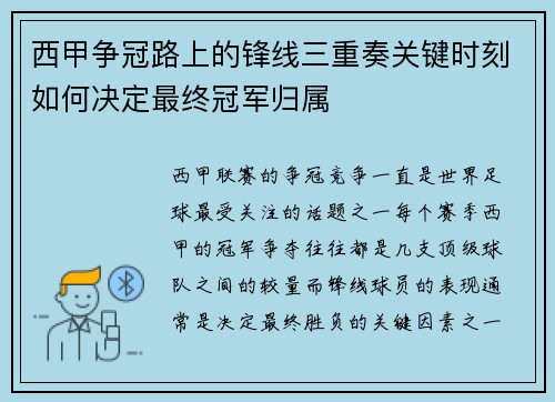 西甲争冠路上的锋线三重奏关键时刻如何决定最终冠军归属